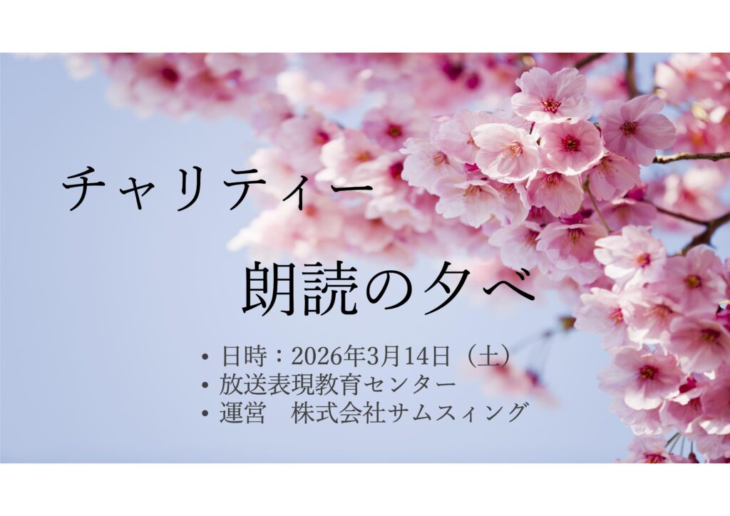 チャリティー朗読会 2026年3月15日 / 長年継続している「あしなが育英会チャリティ朗読会」を行いました。 お陰様で定員オーバーの大盛況で終了。 チームがひとつになって頑張ったお陰です。 ご参加いただきました皆様、ありがとうございました。